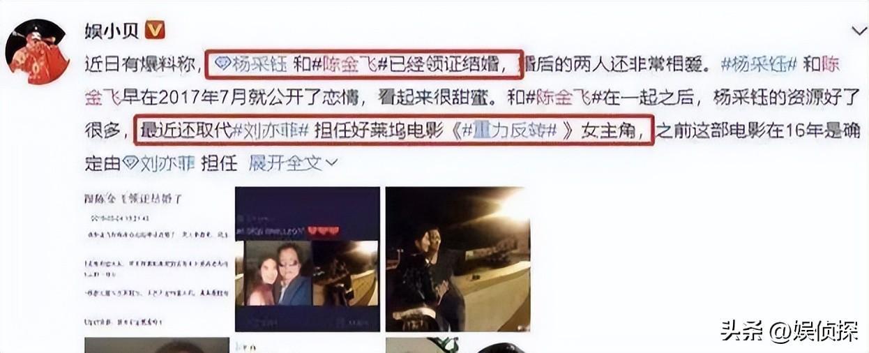 这时杨采钰坐不住了,于是作出澄清,自己和陈金飞正在恋爱,此事才消停下来。