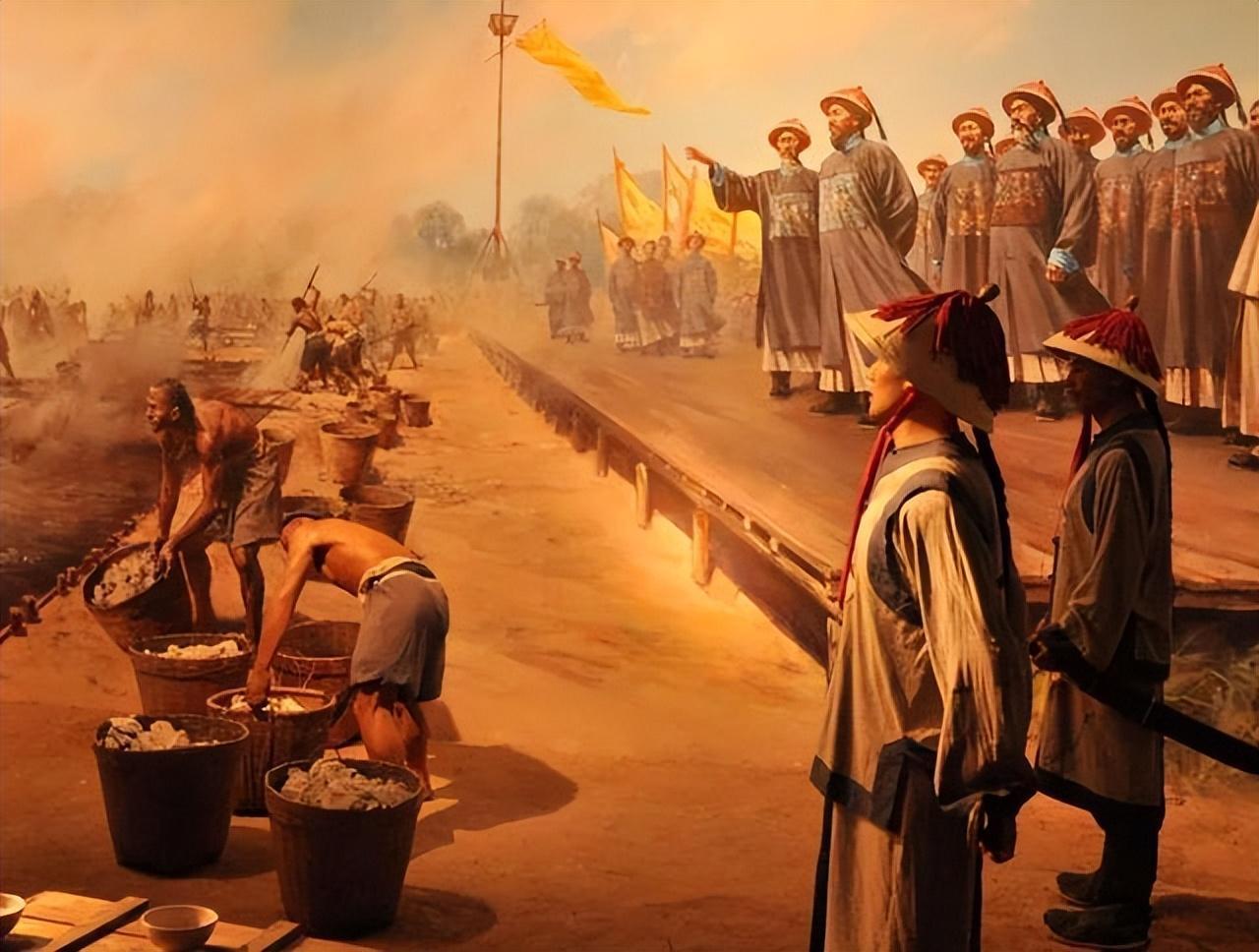 道光皇帝发现以后便命林则徐为钦差大臣去阻止鸦片的流入。于是,在林则徐的主持下,于广东虎门销毁了大量查封得来的鸦片,史称“虎门销烟”。而林则徐在完成这一壮举的同时,也激怒了那些英国毒枭,所以那些英国人便把通商作为借口,策动了一场对华战争。最后因为清政府的腐败无能,且军事落后,最终战败,并且还签订了我国历史上第一个不平等的条约——《南京条约》。
