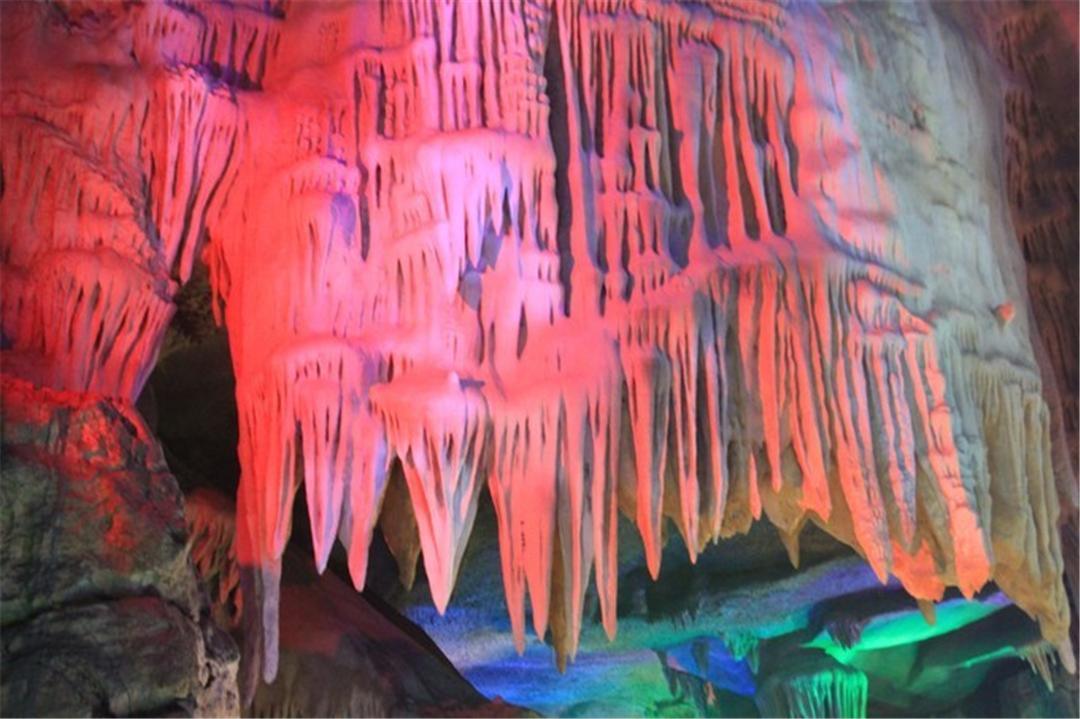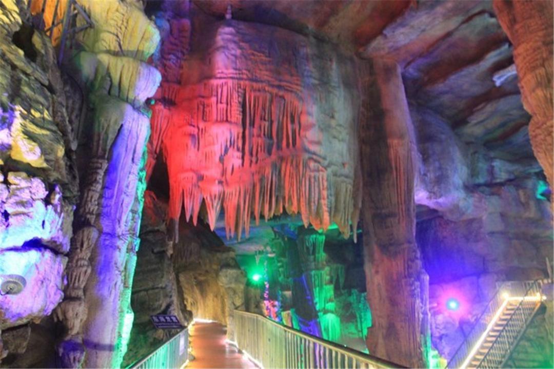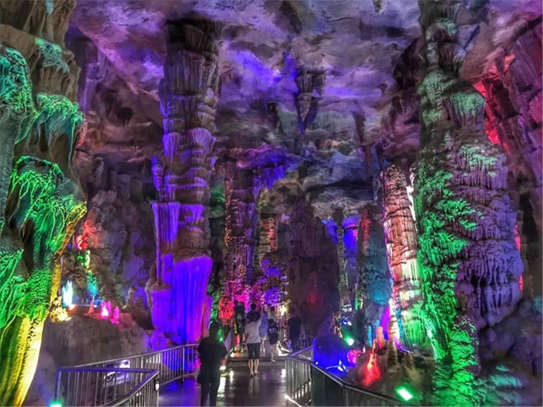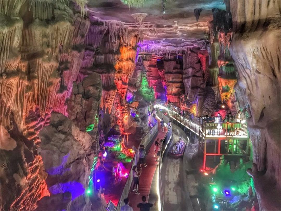 漂流完毕,就可以步行欣赏龙洞的自然风光了,各种奇特的钟乳石,在灯光的照耀下显得是如此的神秘。地下龙宫的大门,气势是照片上无法表达出来的,在令人心惊胆战的同时,又让人跃跃欲试。