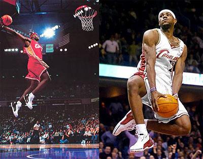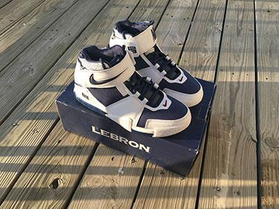 勒布朗.詹姆斯加入 NBA 不到几个月NIKE就为其推出了第一双篮球鞋-----NIKE AIR ZOOM GENERATION。鞋子是用的 sphrene 内村,十分透气,缓震配备了前掌 Zoom,后掌 air sole 的科技,中底搭载有碳纤维板。这款鞋在日后也被称为了詹姆斯1代。