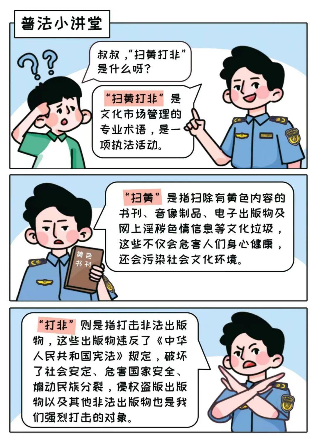 “扫黄打非”是维护国家文化安全和文化市场秩序的重要举措,近年来的“扫黄打非”行动在取得良好成效的同时,也得到了越来越多人的肯定与支持。那么究竟什么是“扫黄打非”?让我们一起在今天的普法小课堂里寻找答案吧!