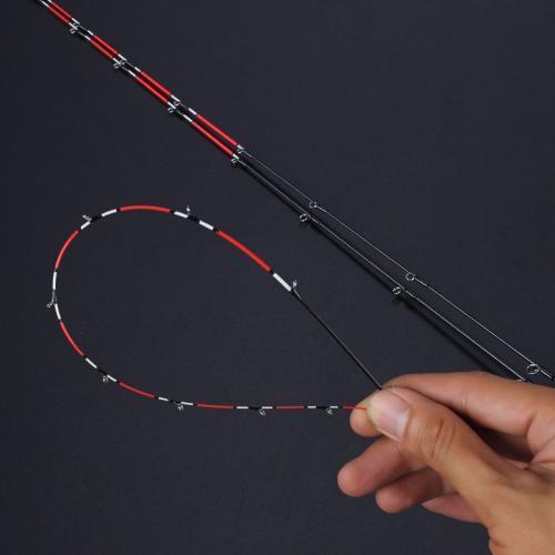①使用软尾筏杆,长度可以根据个人喜好、习惯不同而定,一般选用1.2米-1.5米,短竿操作方便、鱼讯清晰,长竿则以遛鱼见长,控鱼性能优于短竿。竿梢的调性选择可以根据鱼情的变化做不同的选择,如冬天吃口轻宜选择调性较软的竿稍梢,稍软则灵敏度佳,信号更清晰,夏秋鱼情好、吃口猛可以选择相对较挺的竿稍,特别是挂活饵(如小鱼、小虾等)时,调性过软会出现假信号、降低中鱼率。另外,配铅的大小也关系到我们对竿稍调性的选择,一般大铅配硬调竿稍,小铅配软调尾梢(反之:大铅配软调,竿稍太挂;小铅配硬调,竿稍太挺,都会影响正常的信号)。但对于软稍筏杆的选择主要还是看个人的喜好与习惯,就如我们选漂一样,只要你能很好地掌握一支竿子的性能,熟知竿梢的吃口信号,那么长短软硬皆相宜。所以不必去刻意追求筏竿的调性,适合自己的竿子才是最好的竿子。