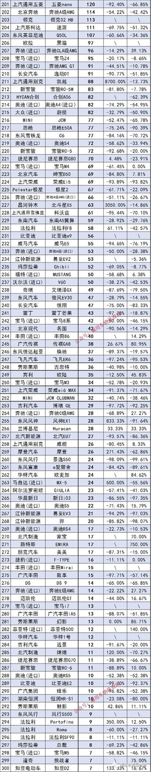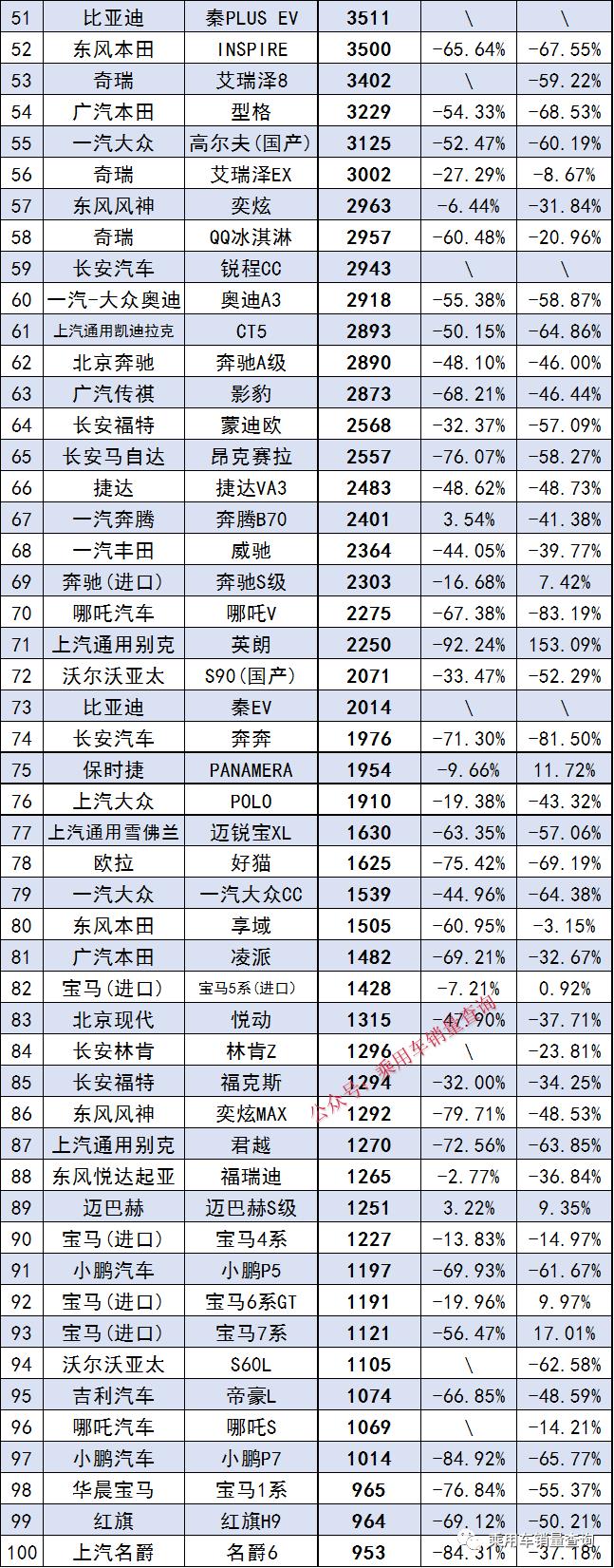 国产思域、国产伊兰特、荣威i5销量超过8千辆,排名第20至第22位。