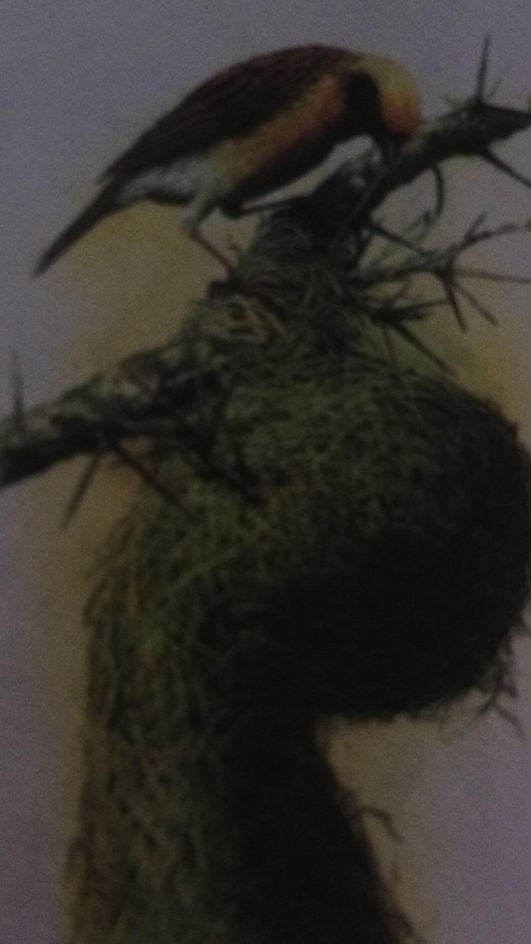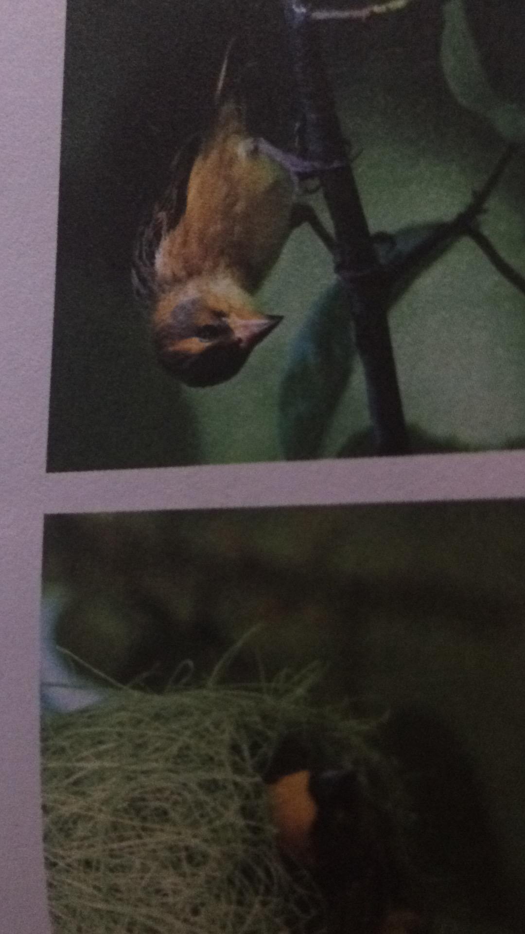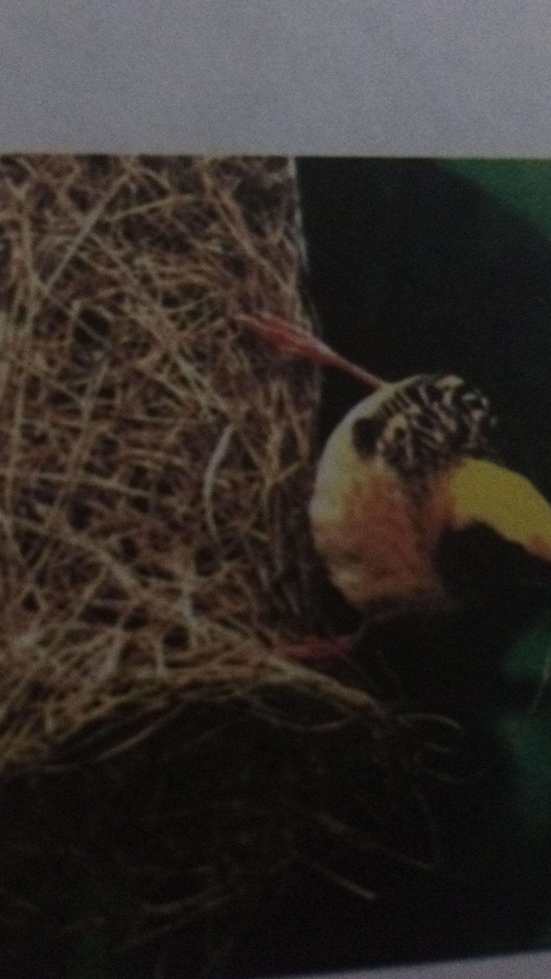 织布鸟用它灵巧的嘴,天才的艺术构思,纺织出最精美的瓶状巢,这些天然艺术品不但漂亮,而且巧夺天工,是一种不朽的大自然杰作,是人类构思时取之不尽的创作源泉。造物主真的是太神奇了。