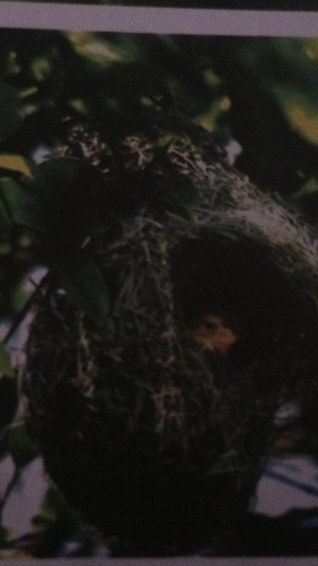 但有的织布鸟雌雄虽然共同筑巢,但并不同巢而居,而是各有卧室。雄鸟的风格比较高,它总要先帮雌鸟把巢做好之后再和雄鸟一起筑自已的巢。是不是“好老公”呀!所以,凡是挂着织布鸟巢的树上,至少有两只“葫芦”高挂在空中,说明这里住着一对织布鸟。挺羡慕吧,“婚房”两套啊!