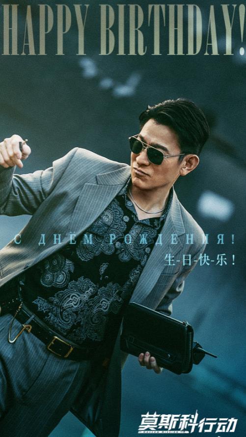 手拿大哥大,腰别BB机,回到90年代,最佳的生贺图:身穿花衬衫、手拿皮包、戴着墨镜,金项链、大背头造型有大佬内味儿,刘德华港风复古西装,不改潇洒本色,酷得赏心悦目。刘德华监制/主演的电影《莫斯科行动》属林超贤的行动三部曲。