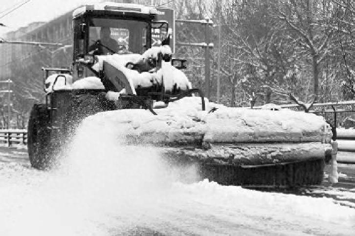 昨天,在沈阳市浑南区,工作人员进行除雪作业。新华社发