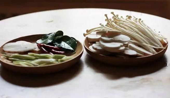 食材:香茅2根,良姜5片,柠檬叶子6片,青柠檬1个,干辣椒2个,口蘑2个,金针菇适量,鱼露1勺,盐1勺,冬荫功酱3勺,棕榈糖少许,椰浆5勺