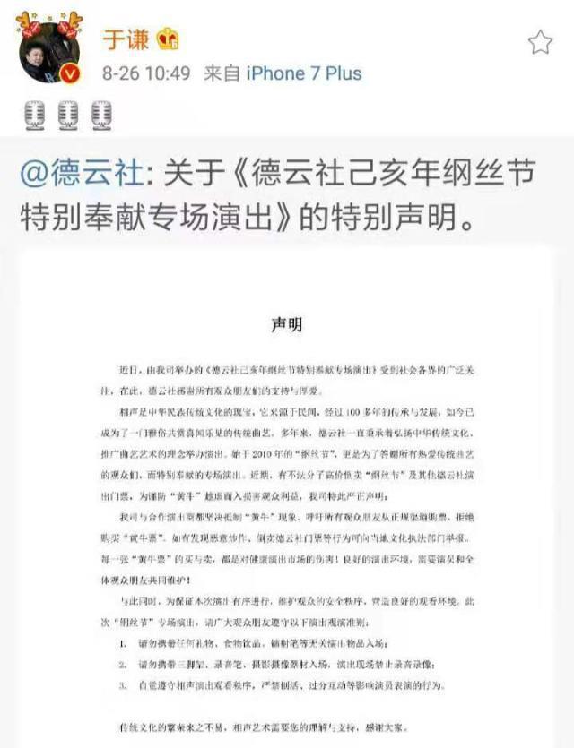 德云社是个“其乐融融”的大家庭。他们对粉丝也很好,不想让粉丝上当受骗。还专门出了声明告诉大家不要上黄牛的当。