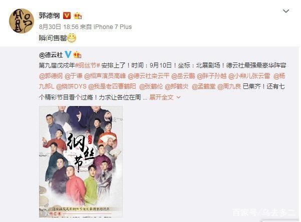 可以看出这次郭德纲带着的都是当红的爱徒们了。网上刚刚开始发声明,售票的时候,他们就开始发微博调侃着粉丝们。