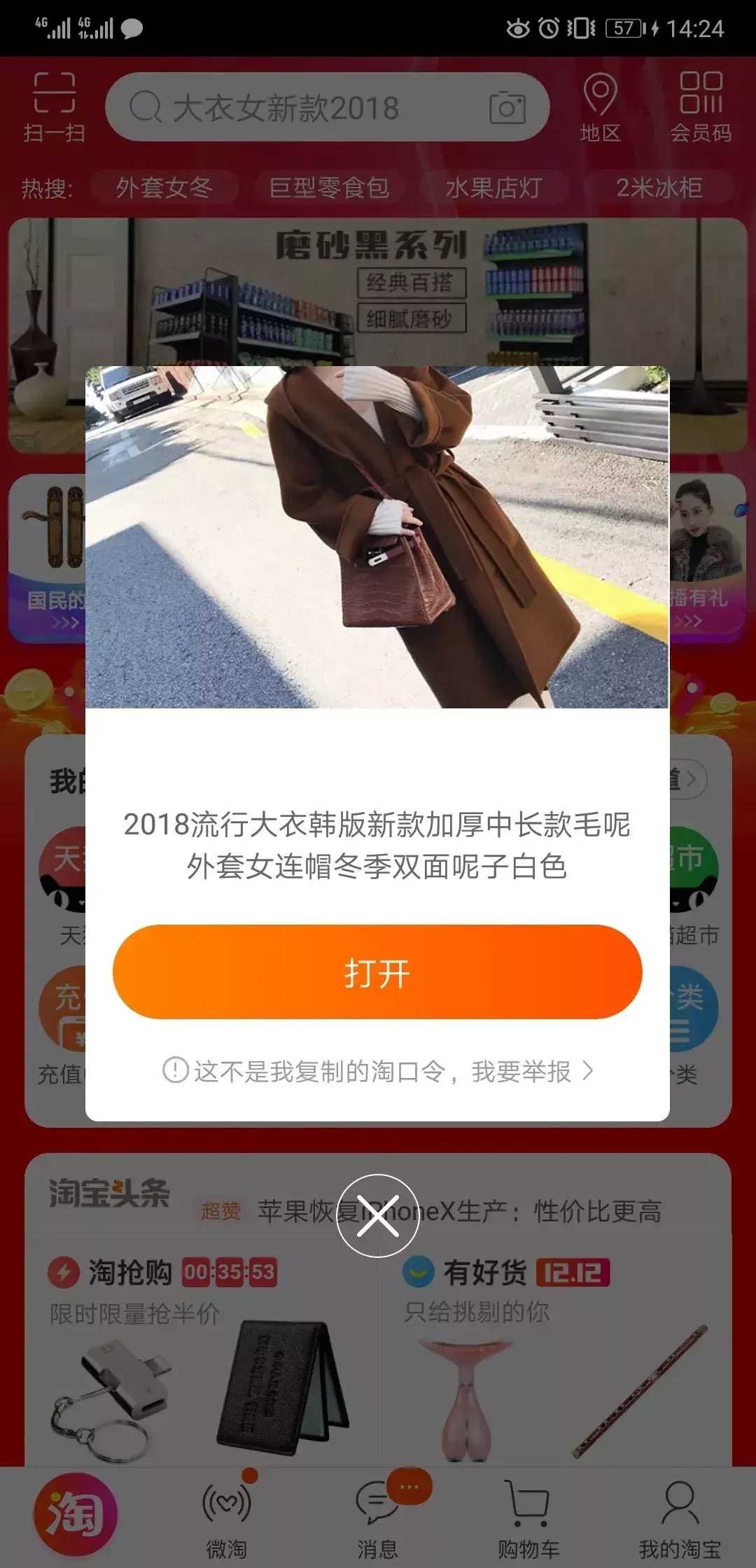 回到手机淘宝,弹出一个淘口令,打开看看