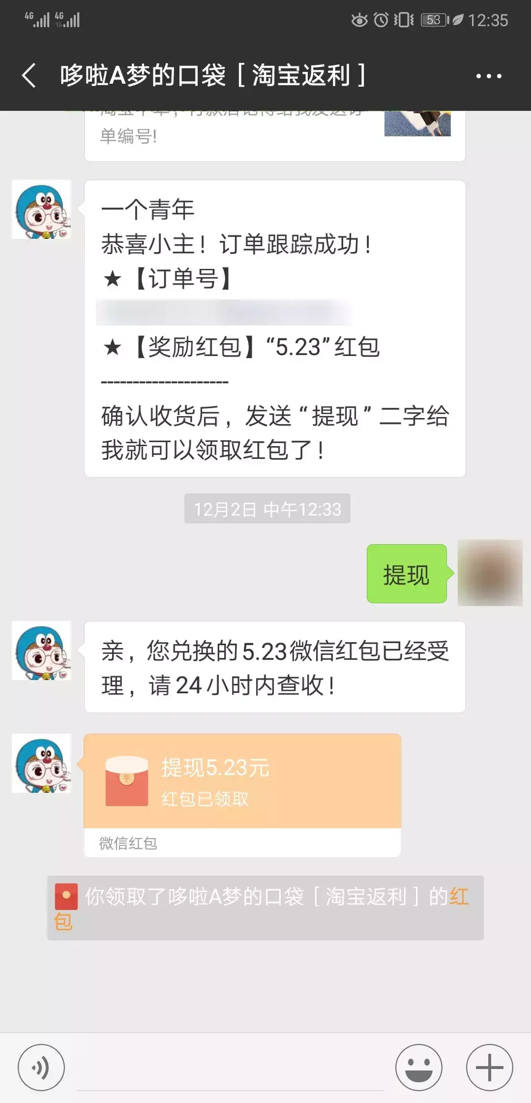 我找了一个使用人数很多、返利比例也非常高的淘宝返现机器人哆啦A梦的口袋微信号:frank_778,添加好友,回复了一条消息!操作步骤讲的很清楚!