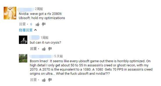 哦!看起来育碧的游戏都是糟糕的优化,用我的2070在最高清晰度跑刺客信条和幽灵行动只有50-55帧,2070和1080差不多,为什么1080能在刺客信条起源上跑70帧。 英伟达和育碧搞什么鬼!
