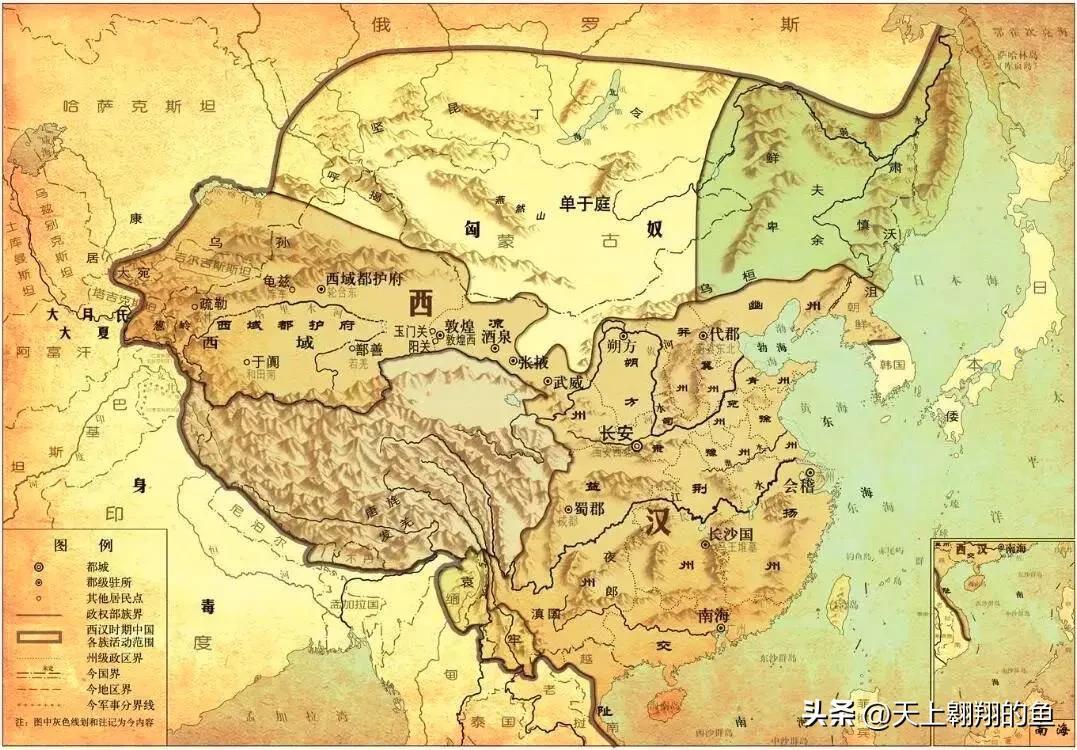 汉承秦制,继承了秦朝的全部疆域,汉武帝时期,经过三代人的休养生息,汉朝国力强盛,开始了一轮的开疆拓土。到了汉宣帝时期,中国的疆域达到极盛,凡是当时适合农业生产的地方,北到朝鲜半岛北部,南到越南的大部分,西到新疆,东到大海,汉朝都建立了行政机构。与今天的中国领土相比,除了青藏高原、蒙古高原和东北大部分,汉朝都有了。