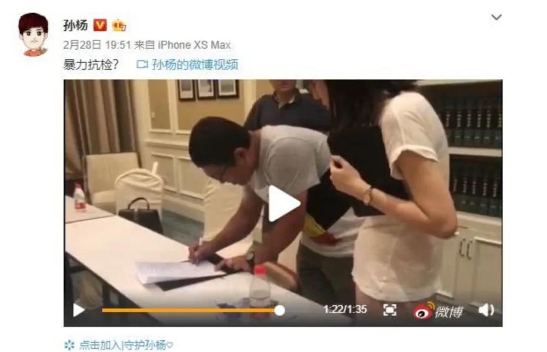 被判禁赛8年的顶格惩罚一出,孙杨很快发了一条微博表示震惊,坚信自己的清白。紧接着当晚他就公布了检测的视频,视频没有打码,直接暴露了几位检测人员的长相,随后他又公布了他们的身份信息。