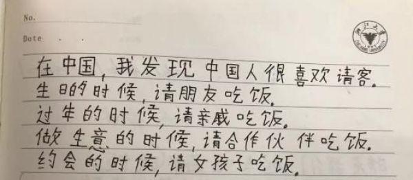 是否感觉熟悉呢!当年我们写英语作文时,不会写的单词,我们是写拼音来着,看来老外也会这招。其实一二年级的小学生都比他写得好,不怪他,只怪中文太难。