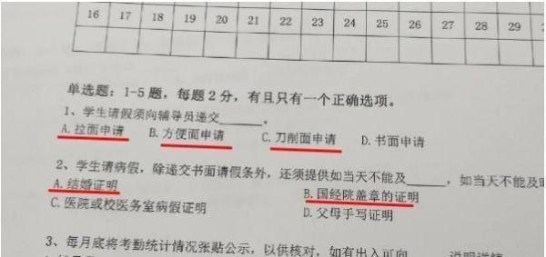 笑喷!一看就不是什么正经出题人,出题人能认真点吗?第一道题出的极其厉害,拉面申请、方便面申请和刀削面申请,最后来一个书面申请。我想对于许多不知道拉面、方便面的外国人来说,这个题目应该很容易错。