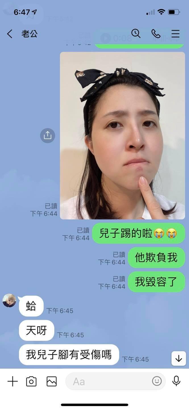 李亮瑾传讯息给张峰奇寻求安慰,没想到老公焦点全在儿子身上。(图/翻摄自Facebook/李亮瑾)