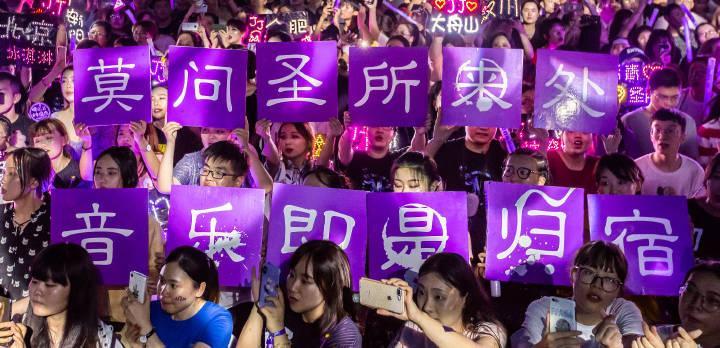 现场歌迷也倾情互动,高举横幅“莫问圣所来处,音乐即是归宿”,看来,歌迷是最懂JJ的人,犹如高山流水。