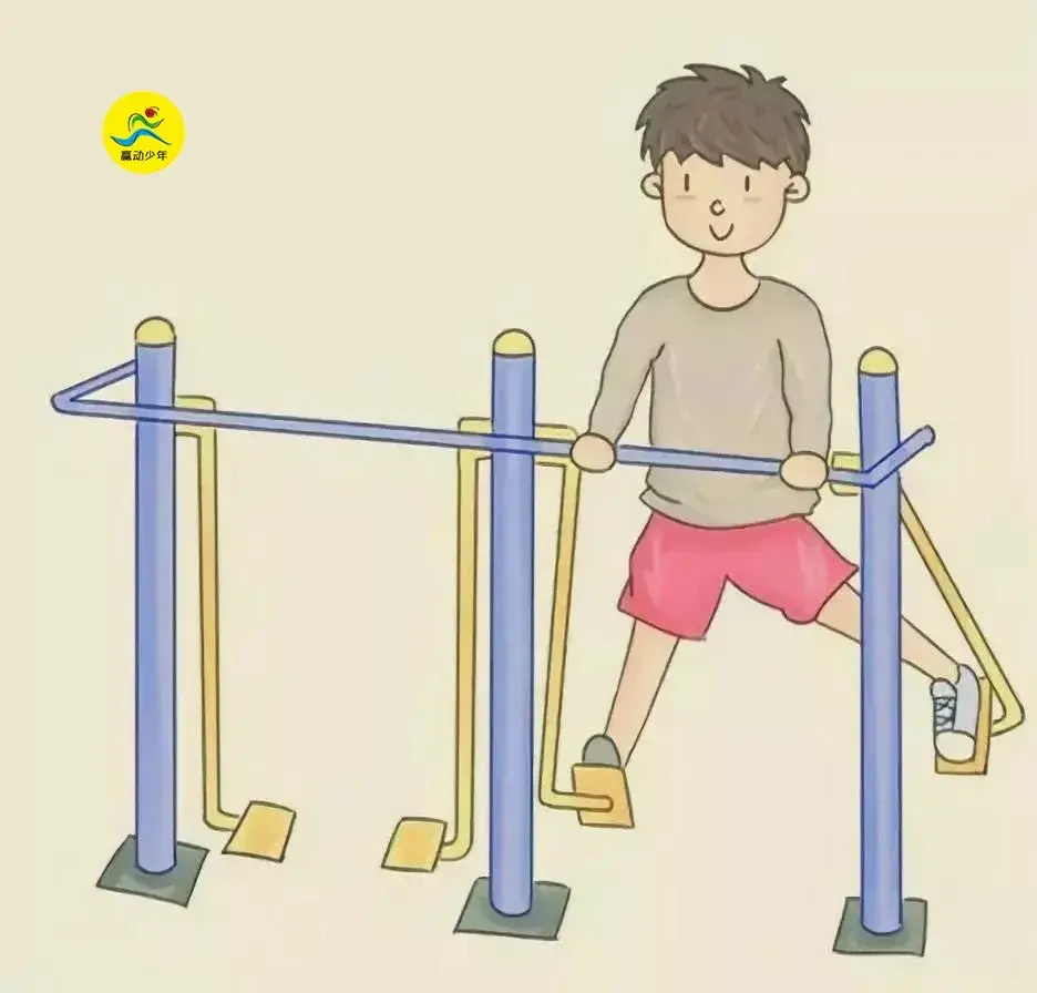 注意事项:动作幅度不宜过大,双腿大幅前后劈开,容易引起损伤,另外避免双腿同时前后大幅悠荡,以免跌伤。