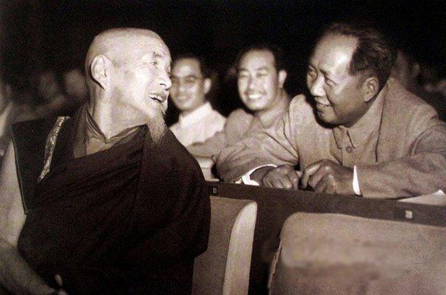 图为毛泽东主席与喜饶嘉措大师亲切交谈。来源:网络