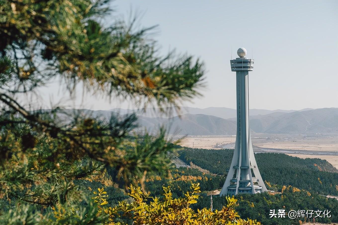 爬到山顶,看到旁边的气象塔,它就像一座帽儿山一样高。
