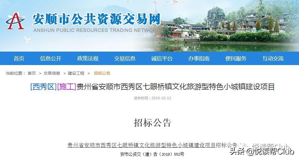贵州省安顺市西秀区七眼桥镇文化旅游型特色小城镇建设项目招标公告