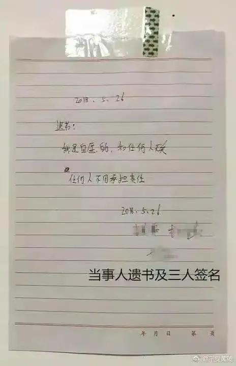 他们用青涩的字体写下的简短遗书,遗书内容为:我是自愿的,和任何人无关,任何人不用承担责任。