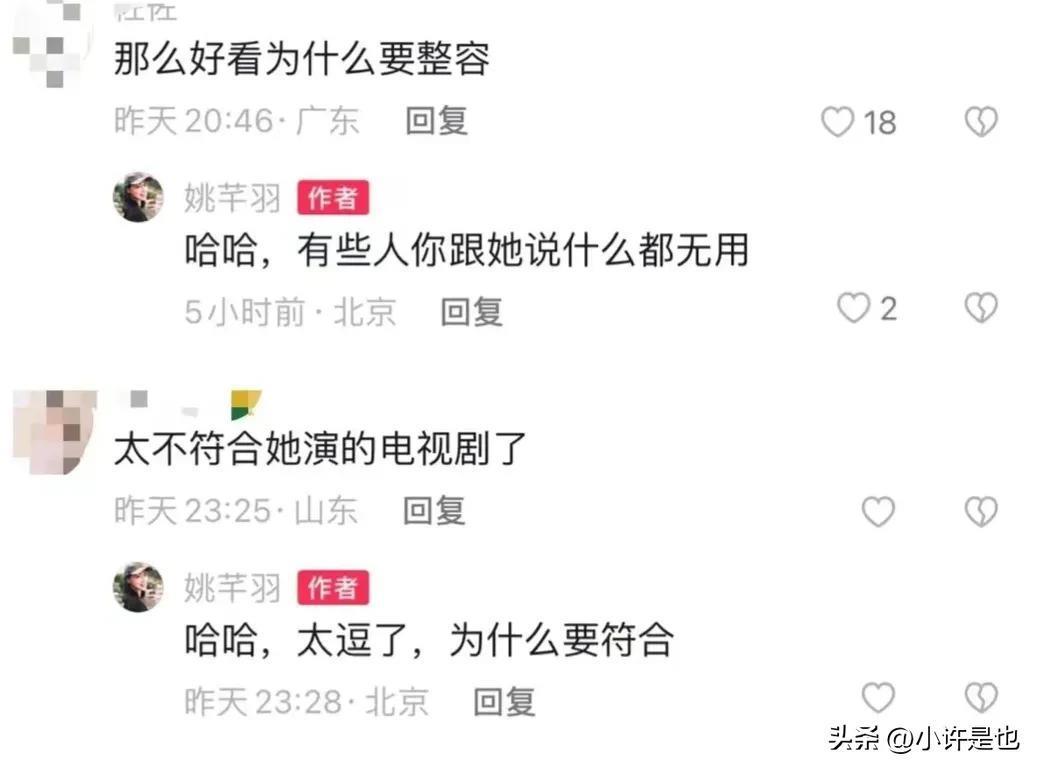 有网友说那么好看为什么要整容,姚芊羽也非常认真的回复,哈哈哈,有些人你很她说什么都无用!