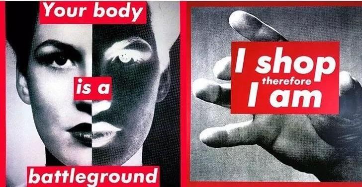 Supreme 甚至可以有理有据地讲,它那个红底白字的 logo 并不是自己一拍脑袋随手画出来的,而是来自女艺术家Barbara Kruger在上个世纪影响世界的一系列海报作品▼