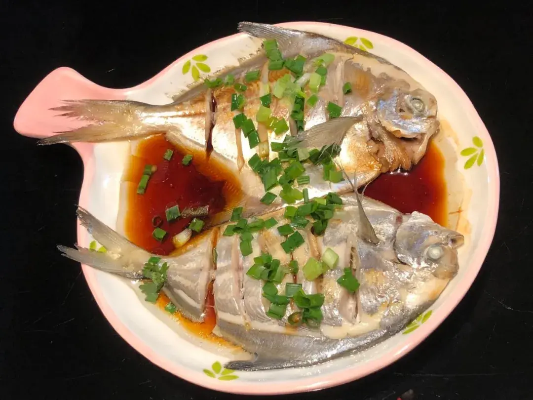 ▼ 清蒸小鲳鱼。 青岛的海捕小鲳鱼,肉质很嫩,所以没有拿来红烧,直接清蒸更加原汁原味。蒸鱼参考菜谱: 我用十二年老陈皮,清蒸湖北特色大白刁,一鱼两吃,来自江城潮爸
