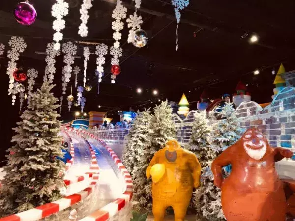 各种造型的滑滑梯,碰碰车,狗拉雪橇,保龄球等这里都有,可以玩耍的项目很多。还有造型各异的冰雕,很适合带孩子来游玩。