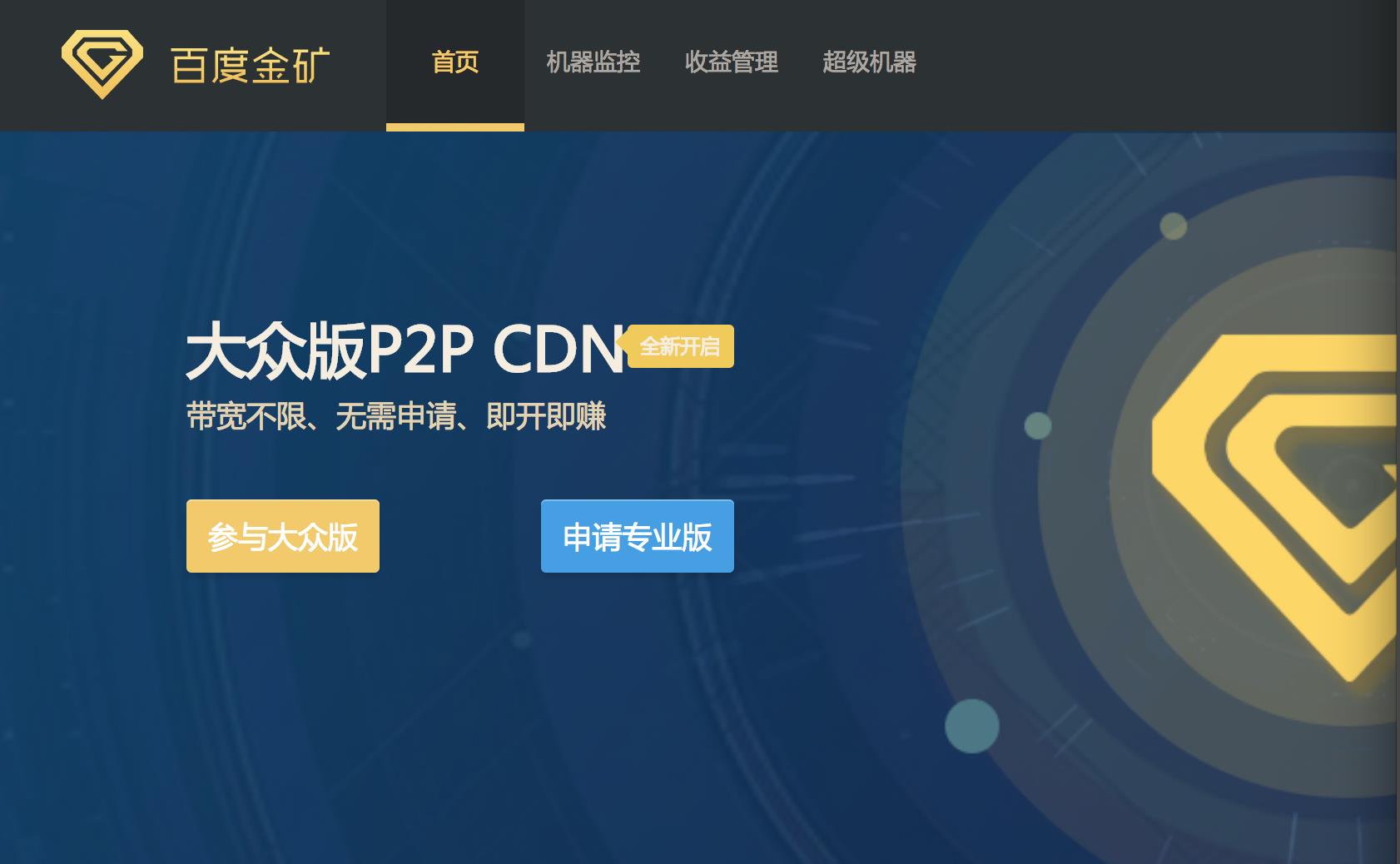 同时币友也将注意力转移到了2015年百度发行的“百度金矿”项目。据官方介绍,“百度金矿超级矿机是针对闲置资源大客户推出的挖矿客户端,通过使用闲置带宽或错峰带宽挖矿获取收益,能帮大客户最大程度上降低机房成本。”而11月 21日百度将百度金矿改名为百度P2P CDN