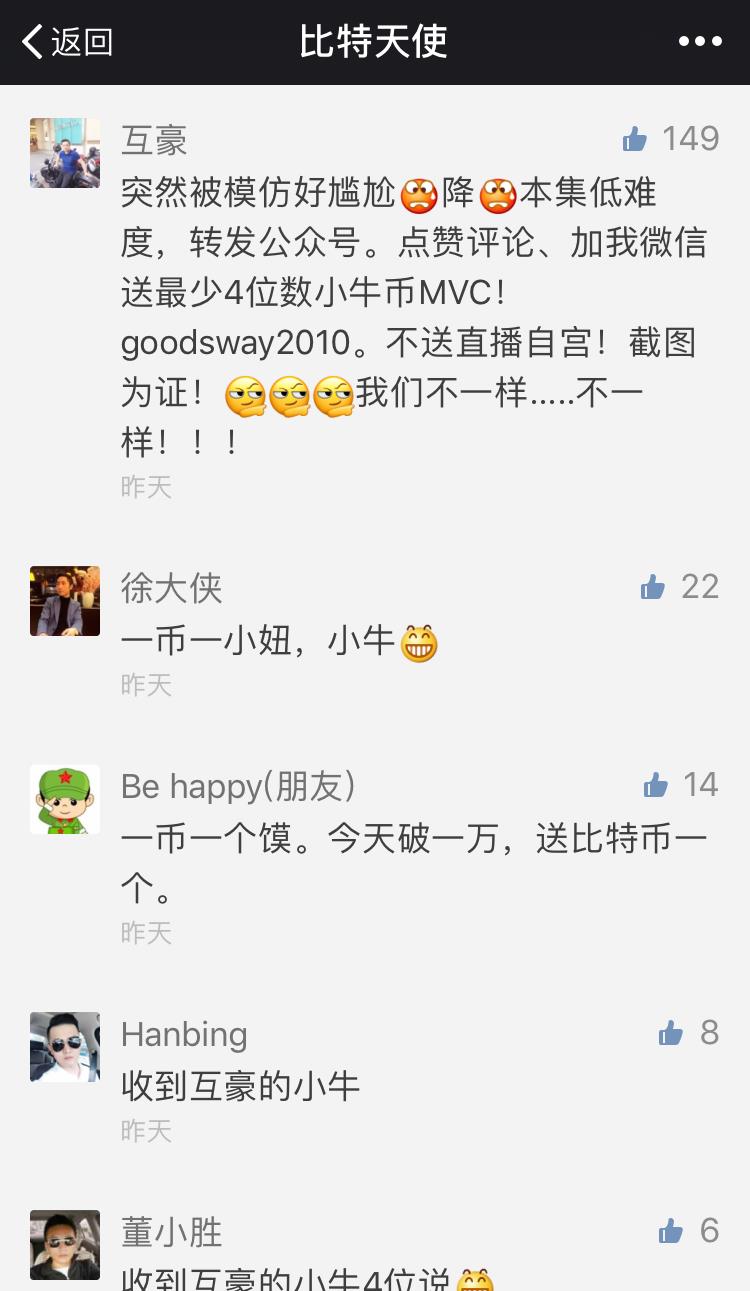 今天公布一下昨天的中奖观众,还是互豪,看来这位观众是个土豪,自己就送币了,关注我们公众号确实福利多多。不过其他观众也要多多加油,争取咱们这期,把互豪拉下马,把100个小牛币拿到手。
