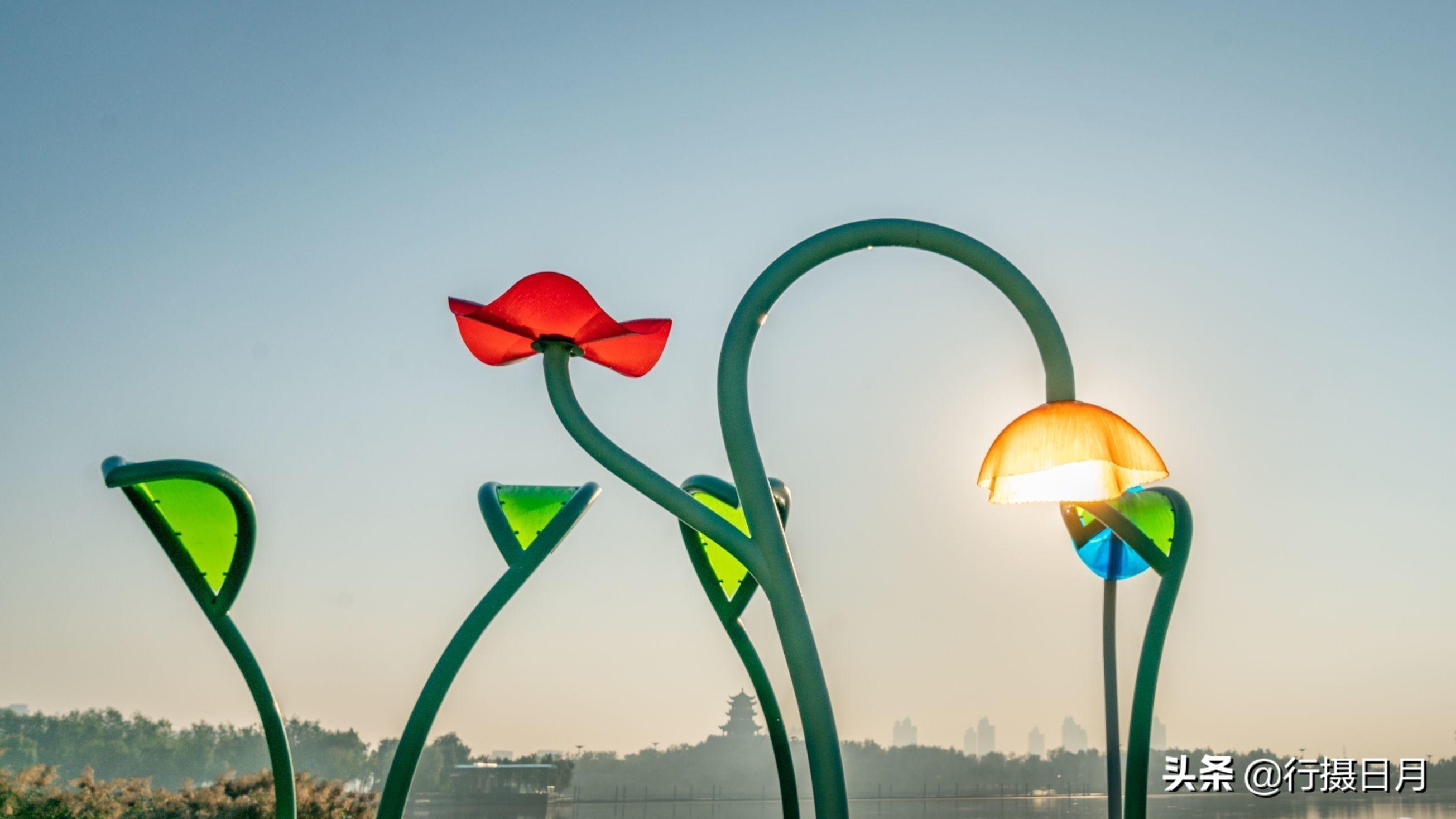 尽管远没有进入盛夏时节,但湖面上却盛开了朵朵荷花,原来这是人工设计的荷花灯,但在白天看不出有什么特别之处。