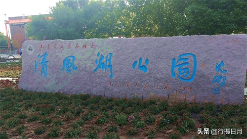 公园的字碑一改那种大红大紫的色调,采用柔和的湖蓝色,寓意清风湖的淡雅秀美。
