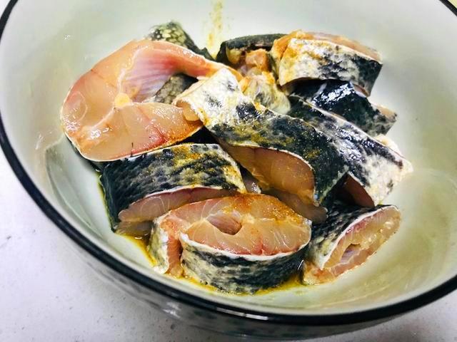2,黑鱼洗干净之后切成大块,放到一个大碗里在,加入料酒,生抽,盐拌匀之后静置一个小时以上,中间记得翻拌几次。