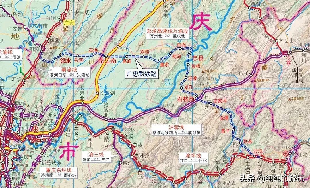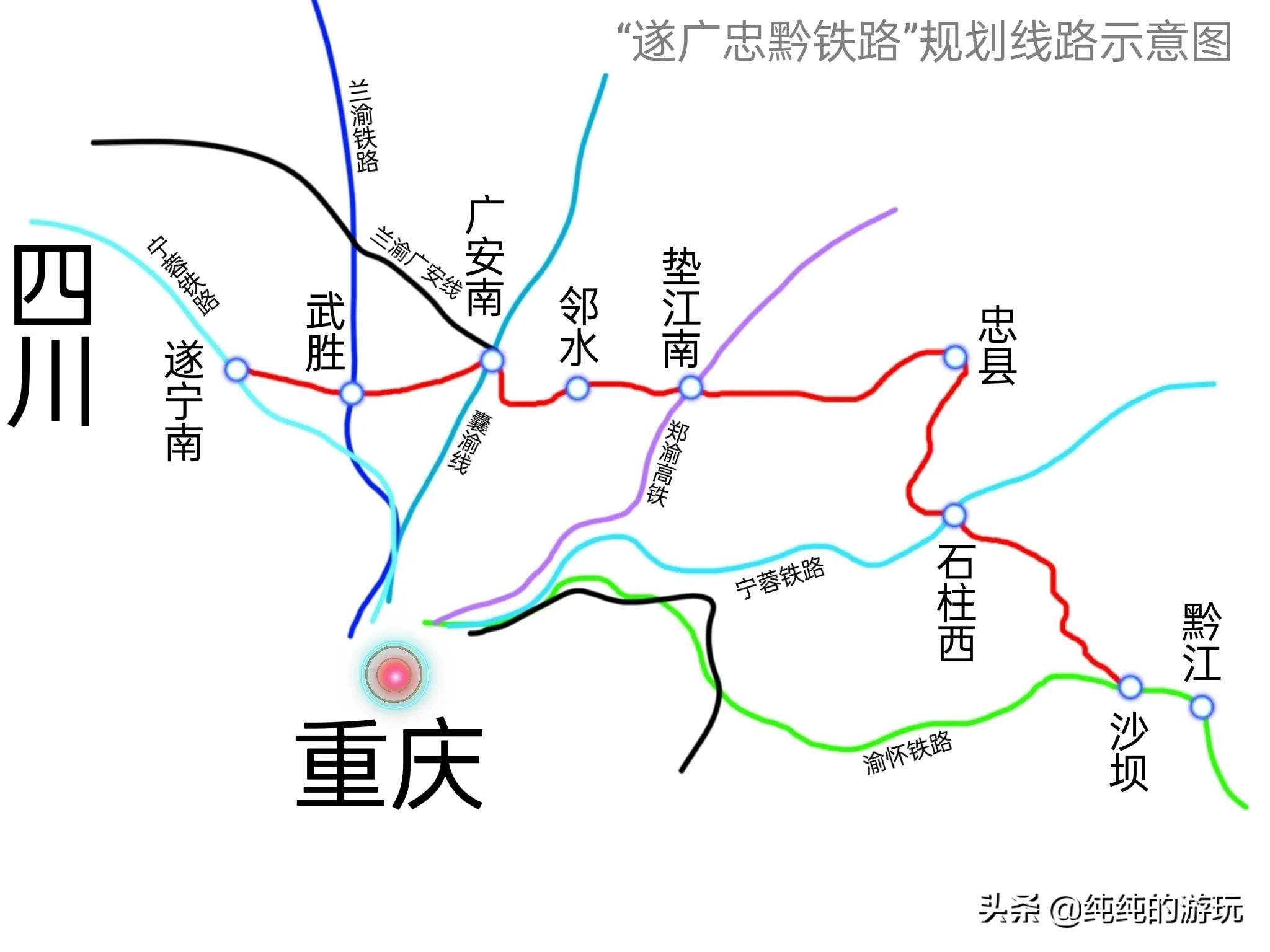 遂宁至广安至忠县至黔江铁路线路示意图