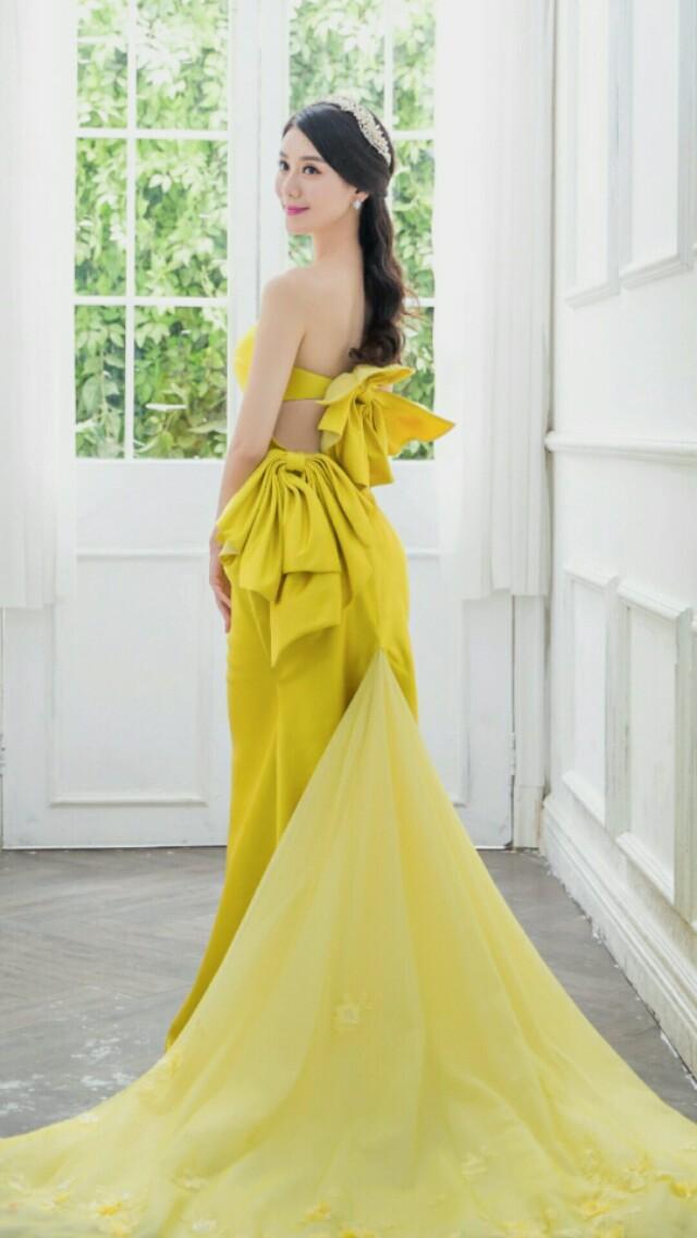 徐婧灵这款特色的扎发卷发造型,与那专注迷人的眼神,甜美的微笑配合起来,漂亮又具气质感,身穿黄色露背抹胸露腰拖地裙装,更能呈现出手臂与后背皮肤的美感,后背黄色系花设计,真的好有潮流感,使得后背看起来更引人注目,拖地裙的设计更能呈现出时尚迷人的气息,整体上看起来漂亮甜美又时尚迷人。