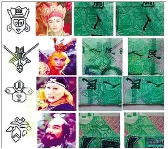居然有西游记师徒4人脸谱!“中国人民银行”和“50”数字附近的区域,暗藏有《西游记》师徒4人的脸谱,由几何图案简单组成,可以说无人能敌了!