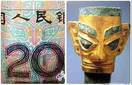 这个可就牛了,不仅藏有字,还藏有脸。我的天,山水画右侧密不透风的树丛里,隐藏有“九九”两个字。至于这个“九九”背后的涵义,至今没人知道。最靠谱的猜测是:第五版人民币发行于1999年10月。除此之外,20元人民币还藏着一副神秘的面孔,就在“中国人民银行”几个字下面!早在这版人民币发行之初,就有人发现了面具图案。发现的人也是够仔细的哦!当时,人们都以为这是三星堆出土的青铜人头像。后来有专家出来称:这团应该是商代青铜器里最常见的——饕 (tāo) 餮 (tiè) 纹饰。