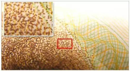 下方看起来就是一条普通的纹路啊,仔细一看,原来是两行“RMB1”和“人民币”在不断循环,简直就是密集咒语啊......