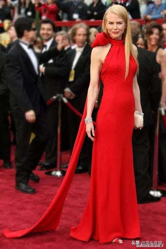⑥2007年,奥斯卡颁奖典礼上,妮可以一袭火红的单边蝴蝶花结的修身礼服惊艳了整个世界。
