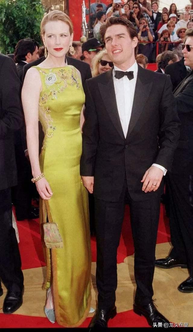 ②妮可基德曼与汤姆克鲁斯出席宴会时的黄色晚礼服的造型,艳丽无比。