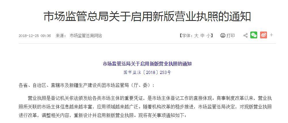 快来瞅瞅!新版营业执照长啥样?