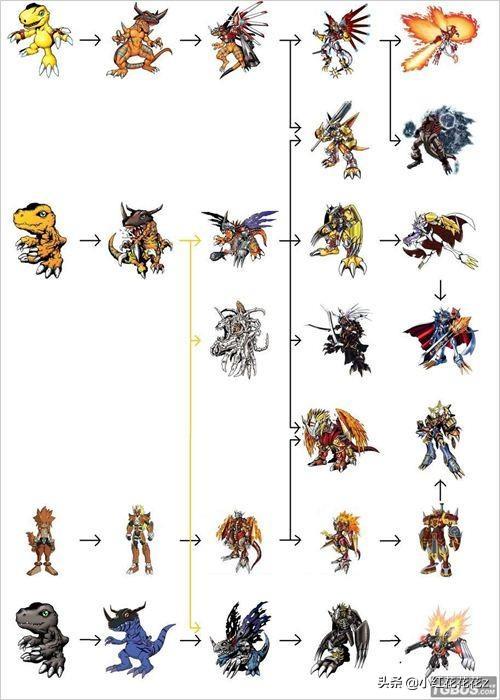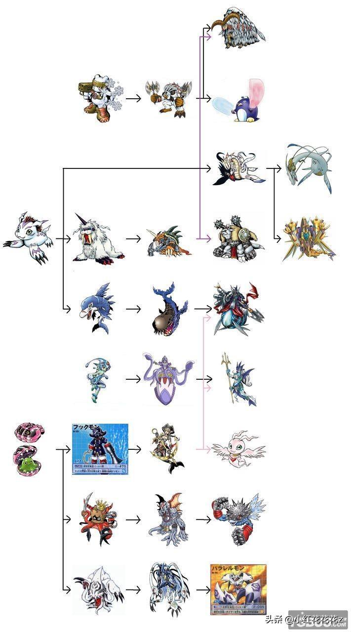 今天无意间看到了一个数码宝贝的进化图集,直接扒拉过来了做一个收藏。如有侵权请联系删除。