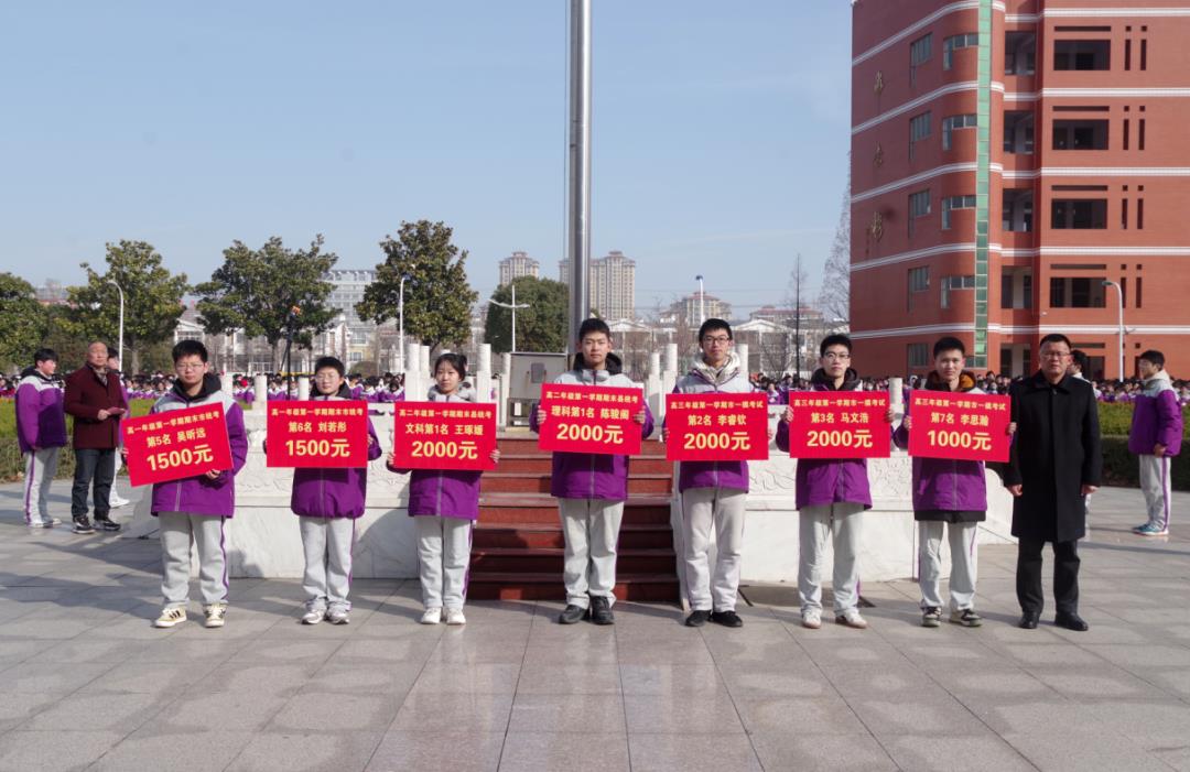 2月26日上午,江苏省东海高级中学举行新学期首次升旗仪式暨奖学金颁奖典礼。