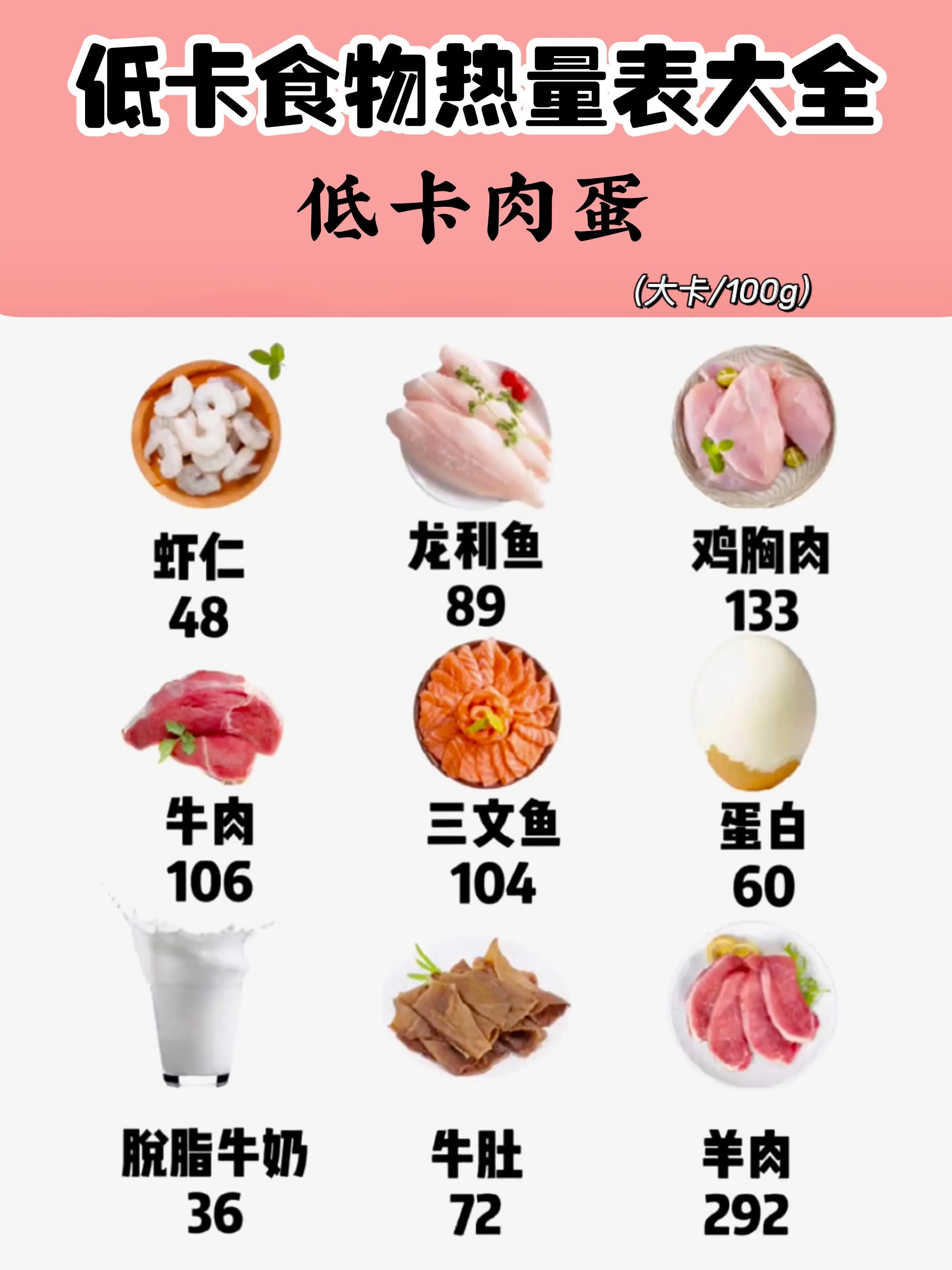 低卡食物热量表大全,健康减脂,越吃越瘦!