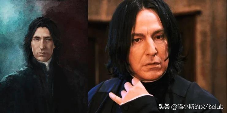 至于小说中的斯内普,则是一个瘦削的男人,皮肤蜡黄,有一个很大的鹰钩鼻,和一具不整齐的牙齿。而且还留着一头齐肩长的、油腻腻的黑发,像窗帘一样贴着脸。