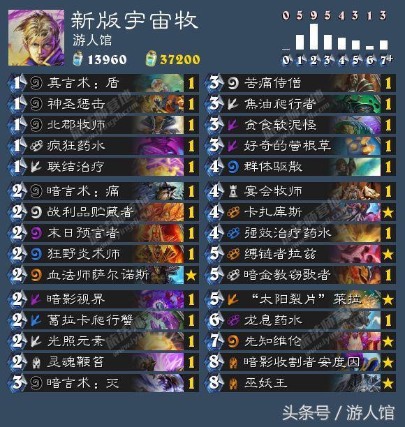 卡组中橙卡比较多,其中必须的有卡扎,拉兹,莱拉,英雄卡;血法和巫妖王最好也有,伟伦优先度最低,新手要组起来很困难,不过以前玩过宇宙牧的就比较简单了,基本上合张英雄卡就行了,来看看和以前的宇宙牧不同的单卡吧。